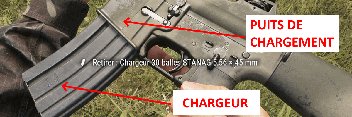 L’approvisionnement d’une arme correspond à la présence ou l’absence de chargeur dans le puits.