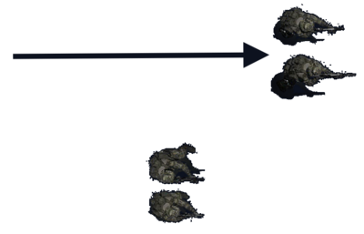 Cette formation facilite la navigation du groupe et dispose d’une puissance de feu accrue sur les latéraux. En revanche, la puissance de feu sur les avants est limitée, le groupe s’expose au risque d’enfilade.